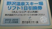 【送料無料】野沢温泉スキー場 リフト1日引換券
