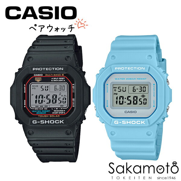 国内正規品 CASIO G-SHOCK ペアウォッチ スクエア型 デジタル【プレゼントに最適】 ギフト カップル 夫婦 お揃い 【文字刻印可能】【ブラック&ライトブルー】 【ジーショック2本セット】【GW-M5610-1JF&DW-5600SC-2JF】