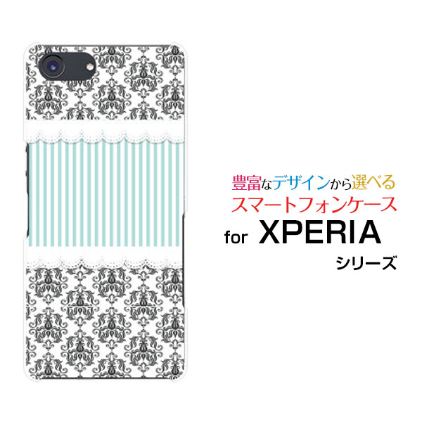 液晶保護フィルム付 XPERIA Ace エクスペリア エース[SO-02L]docomoダマスク柄レースとストライプ[ スマホカバー 携帯ケース 人気 定番 ]